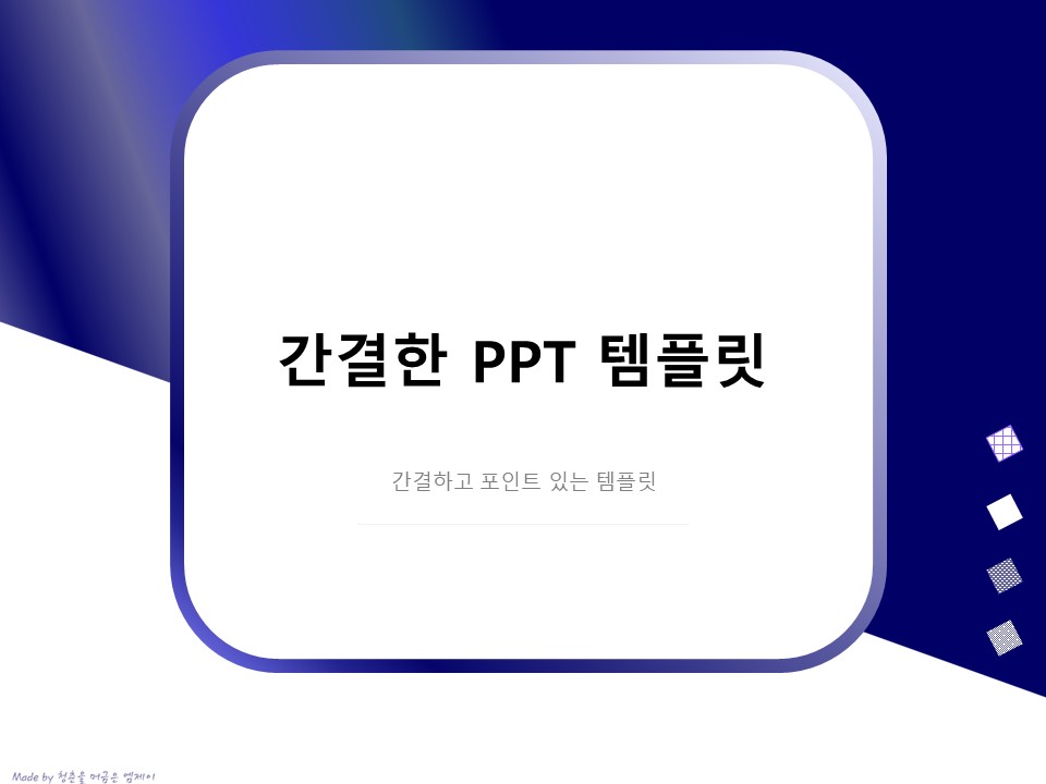 프레젠테이션을 준비하다 보면 참 많은 템플릿을 접하기도 하고 만들기도 하지만 만족스러운 템플릿은 없는 것 같다. 대부분 디자이너들이 만들거나 글상자 또는 도형을 너무 많이 삽입해 놓아 작업할 때 방해를 많이 받는 편이었던 것 같다. 나는 그 부분이 참 불편했고 괜찮아 보이는 디자인들은 다 이미지를 활용하여 용량을 높이는 악순환의 반복이었다.