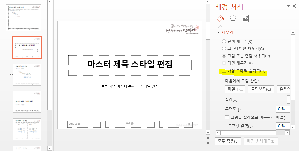 슬라이드 마스터에서 로고가 보이는 걸 원하지 않을 때 숨기기