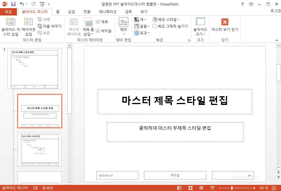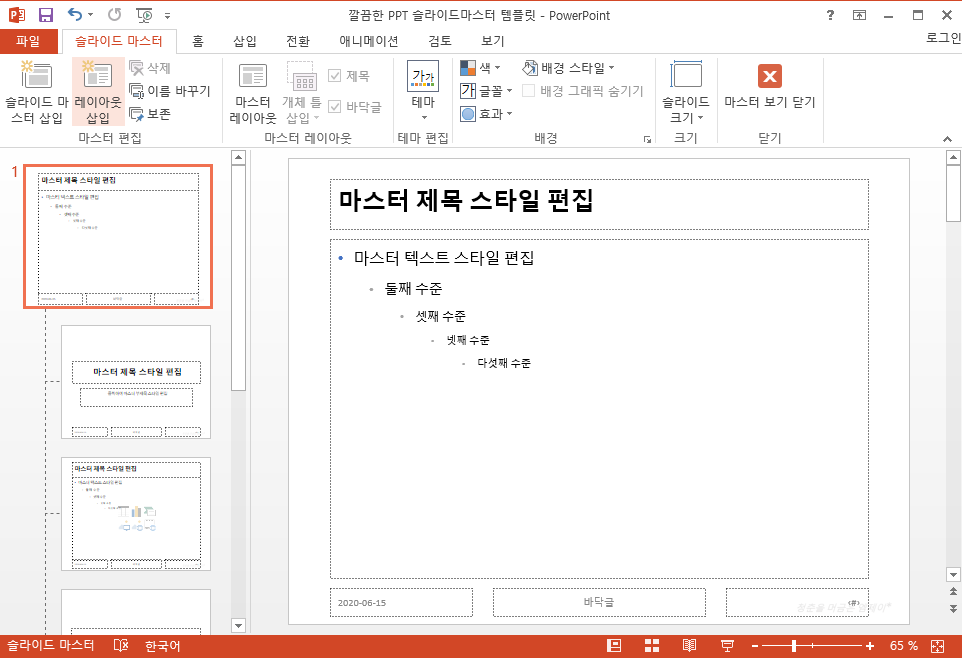 | [PPT템플릿] 슬라이드 마스터 쉽게 사용하는법 - 레이아웃 편집하기3 (0) | 2020.06.04 |